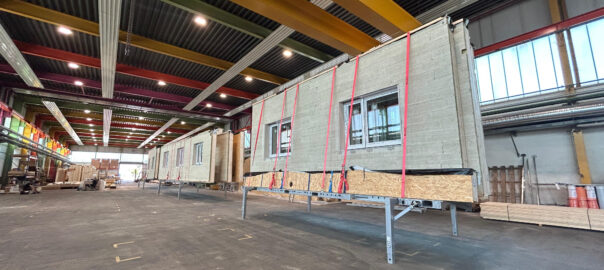 Der AIV saar bekommt eine Führung bei der Loës Group am Standort in Saarwellingen. Wir besichtigen die Produktion im Bereich der seriellen Fertigung von Holzbauelementen. Gezeigt wird ein Beispielprojekt: eine Hybridkonstruktion mit nicht tragenden Außenwänden in Holzrahmenbau.